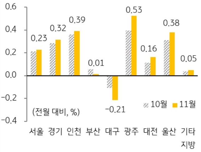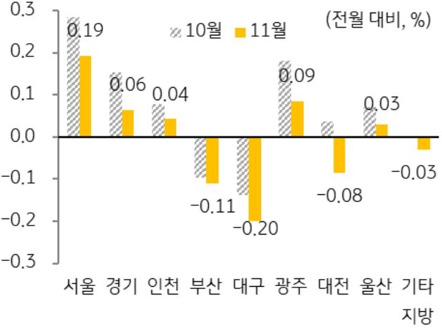지역별 주택 매매가격지수 변동률 추이 / 지역별 주택 매매가격지수 변동률 [출처] KB국민은행