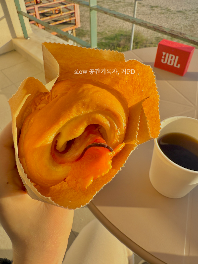 어제 다녀온 고성 무끼카페에서 사 온 햄치즈 소금빵과