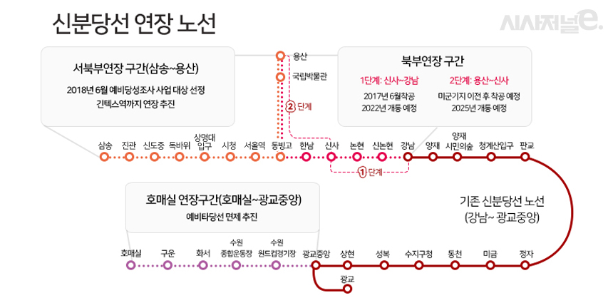 - 초창기 계획에선 강남역에서 신사역(3호선)까지 연결하는 “신분당선 북부연장”을 언급했는데, 위례신사선·GTX 등 다른 노선과 중복 문제로 협의가 길어지고 있어요.