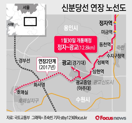 신분당선은 수도권 남부와 서울 강남권을 빠르게 잇는 광역철도 노선으로, 서울 강남역부터 성남 정자역, 용인 수지, 수원 광교까지 이미 개통돼 있죠.
