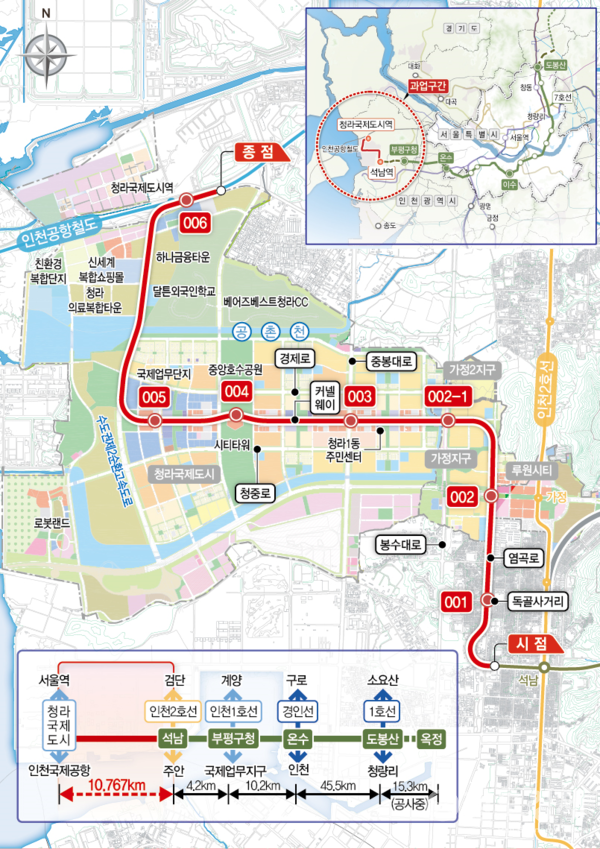 - 구간: 석남역~루원시티~청라국제도시(청라 시티타워 인근)
