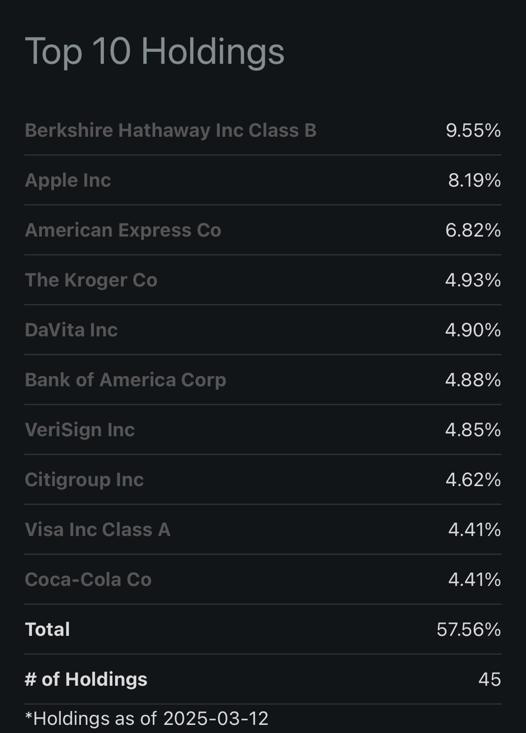 애플(AAPL), 코카콜라(KO), 아메리칸 익스프레스(AXP) 등 핵심 종목